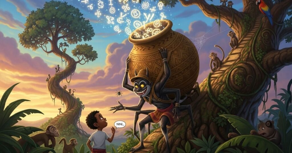 In time, Anansi became a symbol of cleverness and learning. His story reminded everyone that even the smallest creature could teach something important. The people of the villages passed his tale down through generations, each adding their own version, but always keeping the same truth: wisdom is not meant to be hidden or hoarded; it is meant to be shared, like sunlight or water.