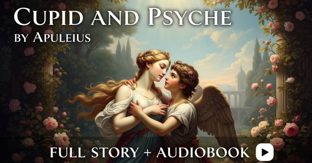 When Psyche came back to the upper world, curiosity once again overcame her. She thought, “If I take just a little of this beauty for myself, perhaps Cupid will love me again.” She opened the box—but instead of beauty, a deep sleep like death poured out. She fell to the ground, motionless, as if lifeless. At that moment, Cupid, who had recovered from his wound, came flying to find her. Seeing Psyche lying still, he brushed away the sleep from her eyes and put it back in the box. Then he touched her gently with one of his arrows, waking her instantly. He forgave her for all her mistakes, for her heart had always been full of love.